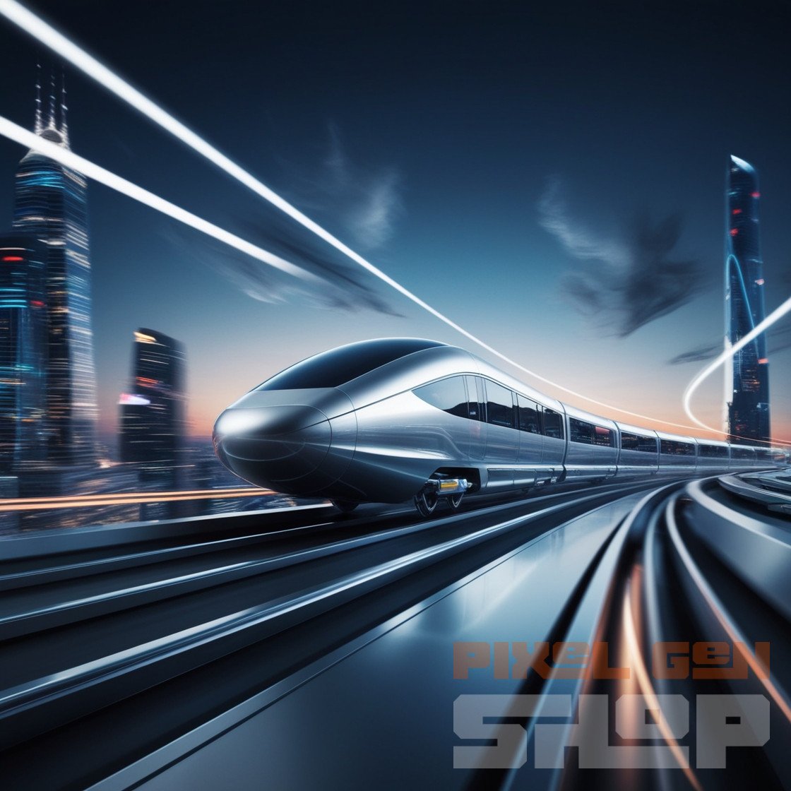 Futuristic High-Speed Train Gliding Through the City