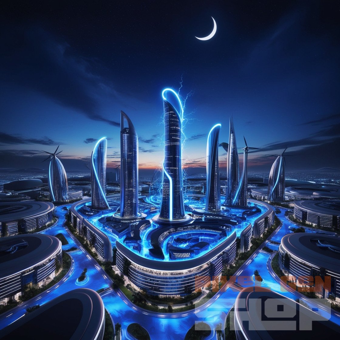 Futuristic Smart City Illuminated by Neon Lights